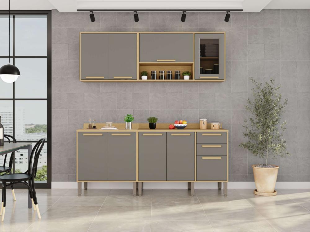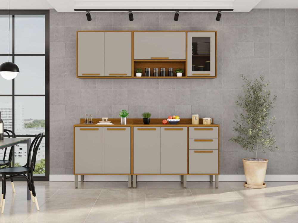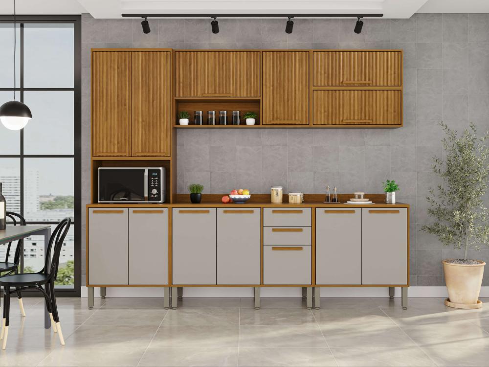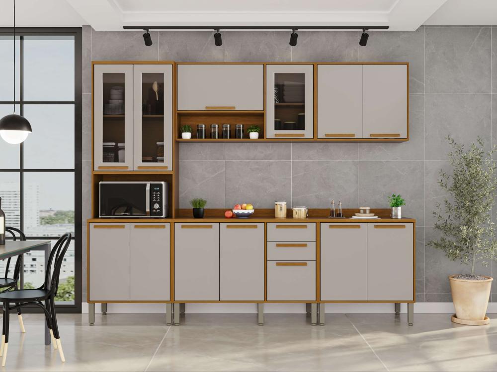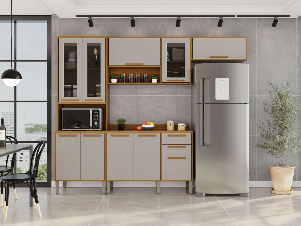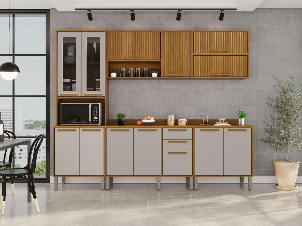 A Cozinha Flórida foi desenvolvida com conceitos de design modernos e atuais para que você tenha um ambiente funcional, organizado e muito bem estruturado para realizar as tarefas diárias. Todos os móveis desse conjunto contam com estrutura em MDP de mais alta qualidade, que garante uma longa vida útil à sua cozinha. Além disso, as portas de vidro trazem uma estética perfeita a esta cozinha, puxadores em MDF discretos e resistentes, corrediças telescópicas e uma coloração incrível que ajuda a trazer mais aconchego, sofisticação e elegante para o ambiente.