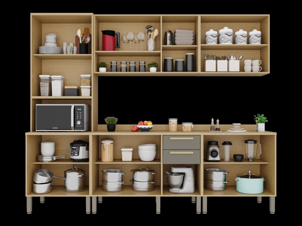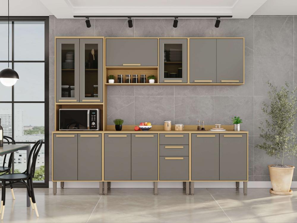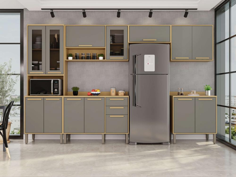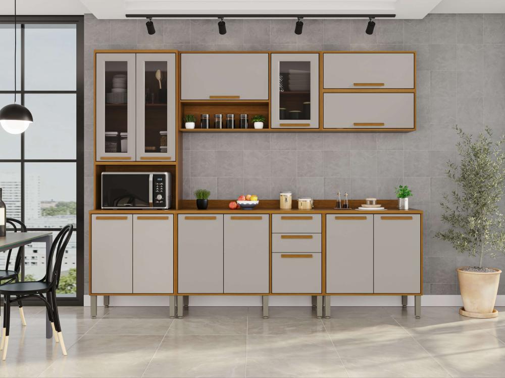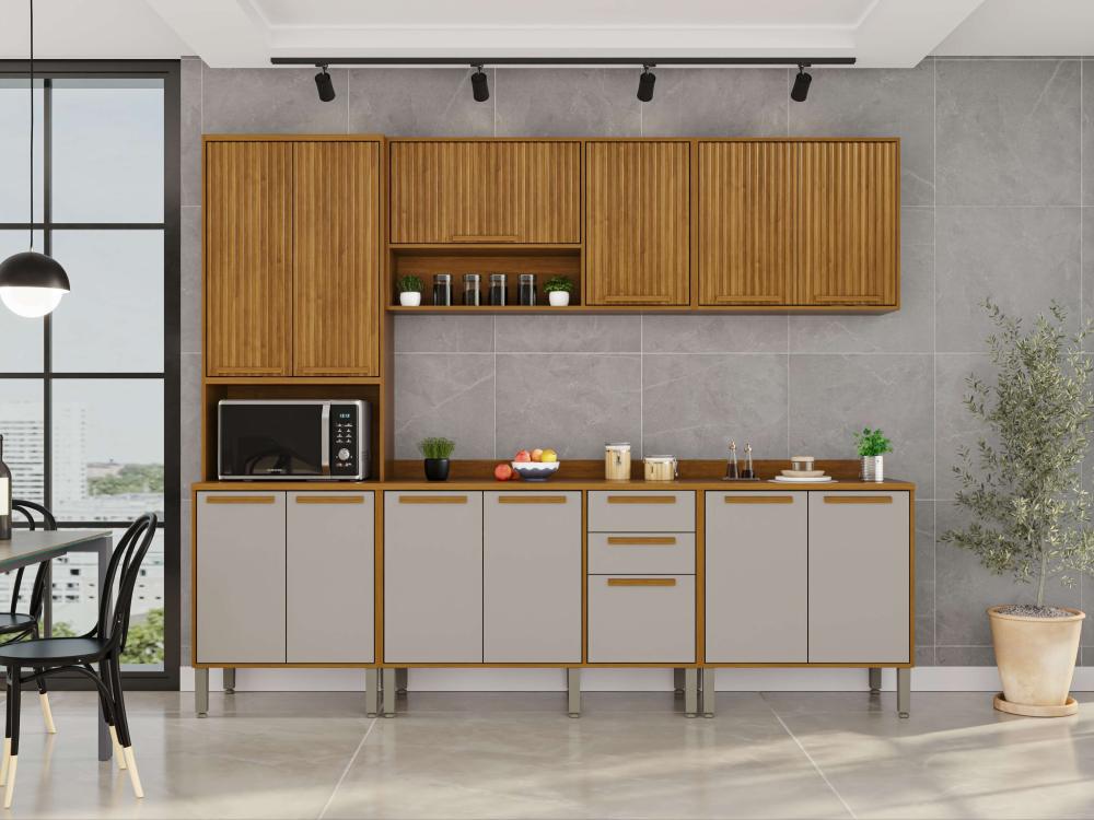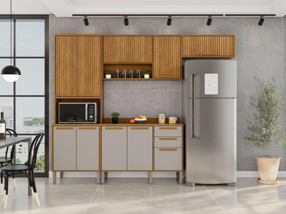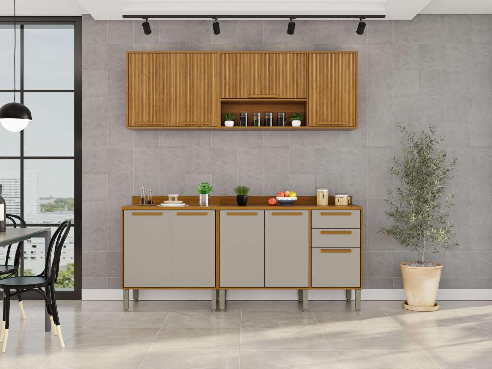 A Cozinha Flórida foi desenvolvida com conceitos de design modernos e atuais para que você tenha um ambiente funcional, organizado e muito bem estruturado para realizar as tarefas diárias. Todos os móveis desse conjunto contam com estrutura em MDP de mais alta qualidade, que garante uma longa vida útil à sua cozinha. Além disso, as portas de vidro trazem uma estética perfeita a esta cozinha, puxadores em MDF discretos e resistentes, corrediças telescópicas e uma coloração incrível que ajuda a trazer mais aconchego, sofisticação e elegante para o ambiente.